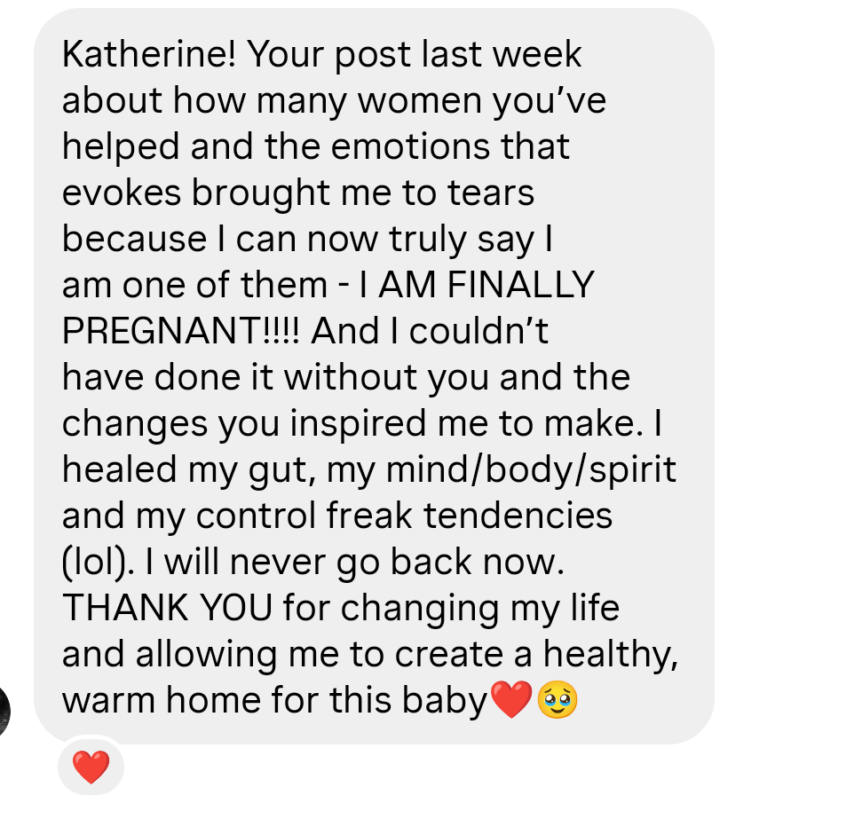 What made this work so powerful was how simple and attainable it felt. Katherine is direct and insightful — no fluff — and the changes were easy to implement but incredibly effective. Through diet changes, cutting out coffee, and mindset shifts, I finally found a way of living that supports my fertility and long-term health.